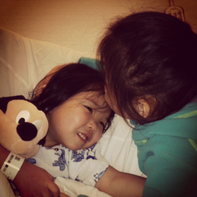 Recovery is my least favorite part of the day. Iris wakes up scared, in pain, and attached to heart monitors, her IV, and a myriad of other equipment and tubes. I’m thankful that they’ve always allowed me into the recovery room before she wakes up. I’m the first person she sees when she opens her eyes, and her little hands immediately reach out for me. Solana came into recovery with me this time and stood next to Iris’ bed, gently stroking her hair and whispering to her. The nurse was a little teary-eyed watching this scene play out. I’m so proud of both my girls.